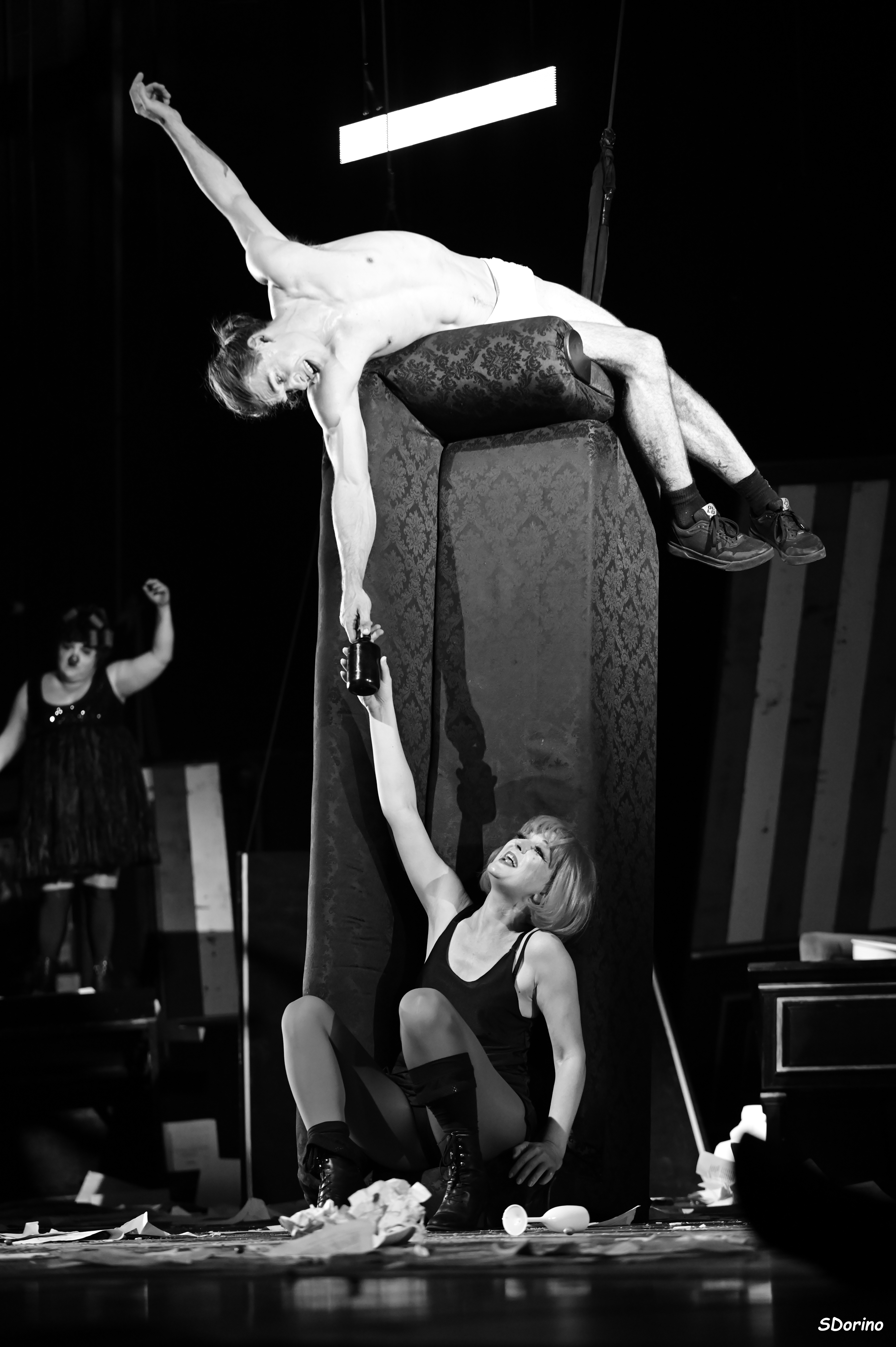 Karelle Prugnaud et son complice Nikolaus Holz signent une version ébouriffante et déjantée de la célèbre pièce de Feydeau, On purge bébé, où l’auteur sonde et dépouille le couple avec une cruauté comique. Une farce hilarante à la limite du surréalisme menée tambour battant par des interprètes à la fois acteurs, circassiens et clowns au meilleur de leur forme !